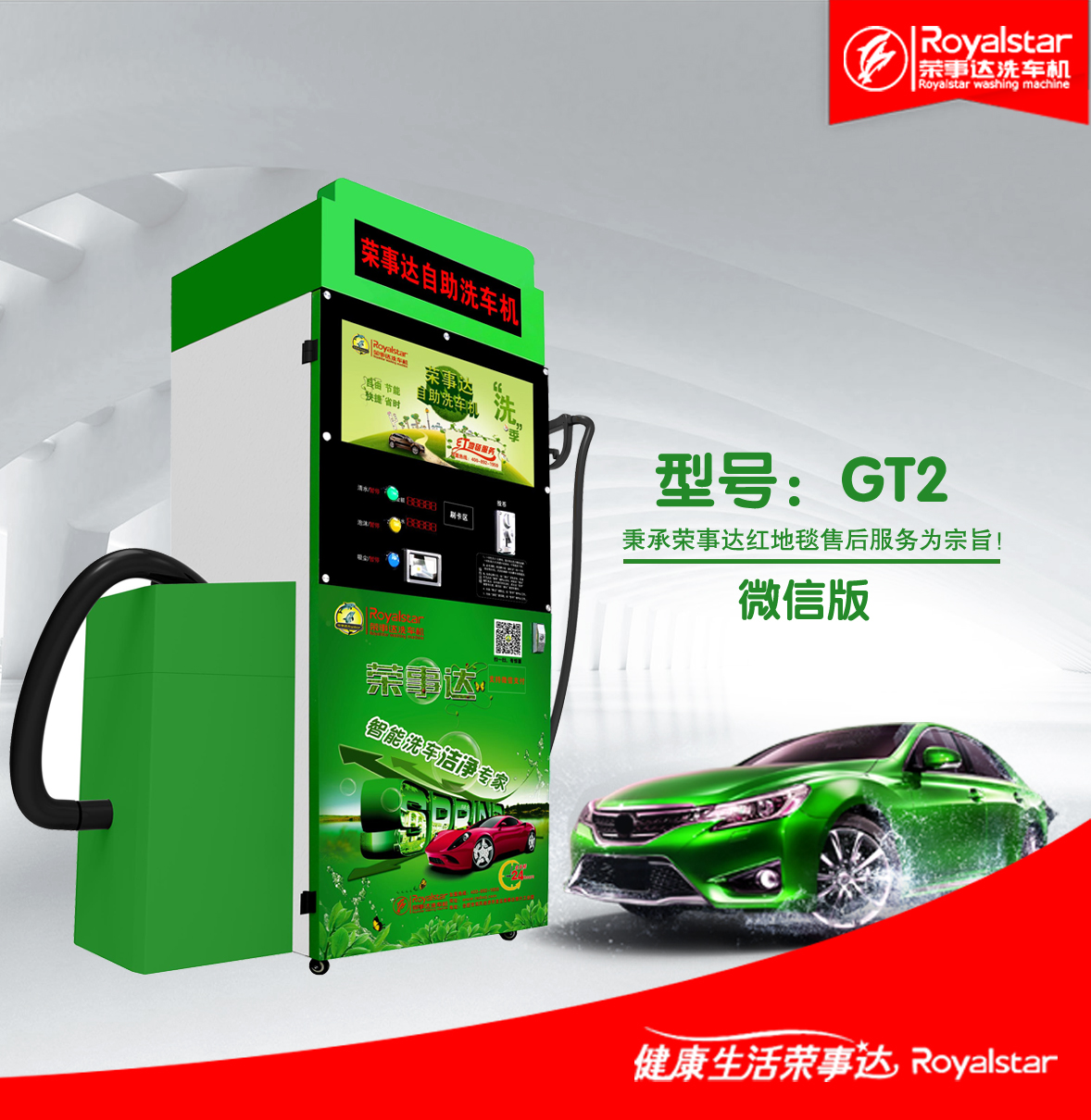 荣事达品牌致力于智能科技成果转化,其专利技术产品在国际上属地位,推出的智能自助洗车机,安装方便,智能化按键式洗车功能,使用简单,安全可靠,全天候24小时自助营业,随到随洗,省时省钱,节水省电,既方便了洗车的顾客,又增加了营业收入,具有行业的技术优势和市场竞争优势。